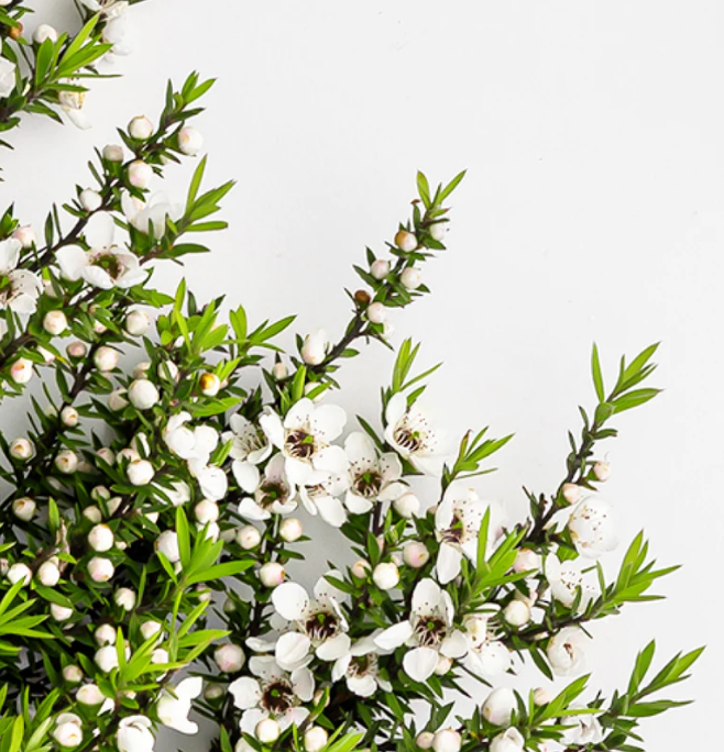El Manuka es un árbol icónico de Nueva Zelanda que crece en todo el país y que a menudo se encuentra en riscos y cimas de acantilados azotados por el viento. Manuka es un arbusto o árbol pequeño nativo de rápido crecimiento que alcanza entre tres y cuatro metros de altura y está cubierto de flores dulces y fragantes durante muchos meses del año. Estas flores son una increíble fuente de alimento para una variedad de insectos y aves amantes del polen. Cuando las abejas la recolectan, la miel resultante tiene un mayor contenido de metilglioxal (MG), lo que brinda propiedades excepcionalmente poderosas para mejorar la salud. Los aceites extraídos de esta planta tienen propiedades curativas y calmantes igualmente milagrosas.