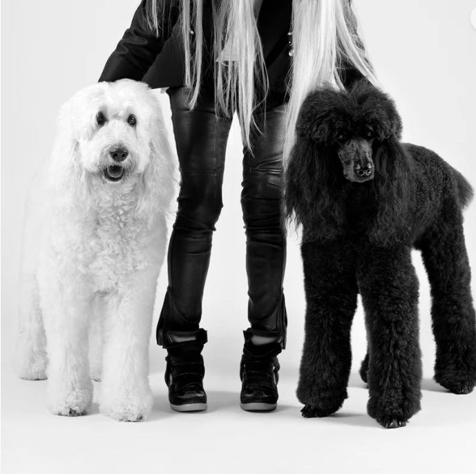 A los 'chicos', como se les llama cariñosamente, les encanta salir a la naturaleza y correr libremente. Del mismo modo, viven en el regazo del lujo. Son nuestra familia y están integrados en nuestro hogar tanto como en nuestras vidas. A Smith, un Retradoodle grande de color blanco cremoso, nada le encanta más que nadar, encontrar barro y ensuciarse, preferiblemente a diario. Esto significa que es necesario lavarlo con más frecuencia. A Burton, un caniche estándar negro muy activo, le gusta lucir un peinado más largo y estilo estrella de rock, acorde con su personalidad. Tiene una piel delicada y sensible, propensa a sufrir puntos calientes e irritación.