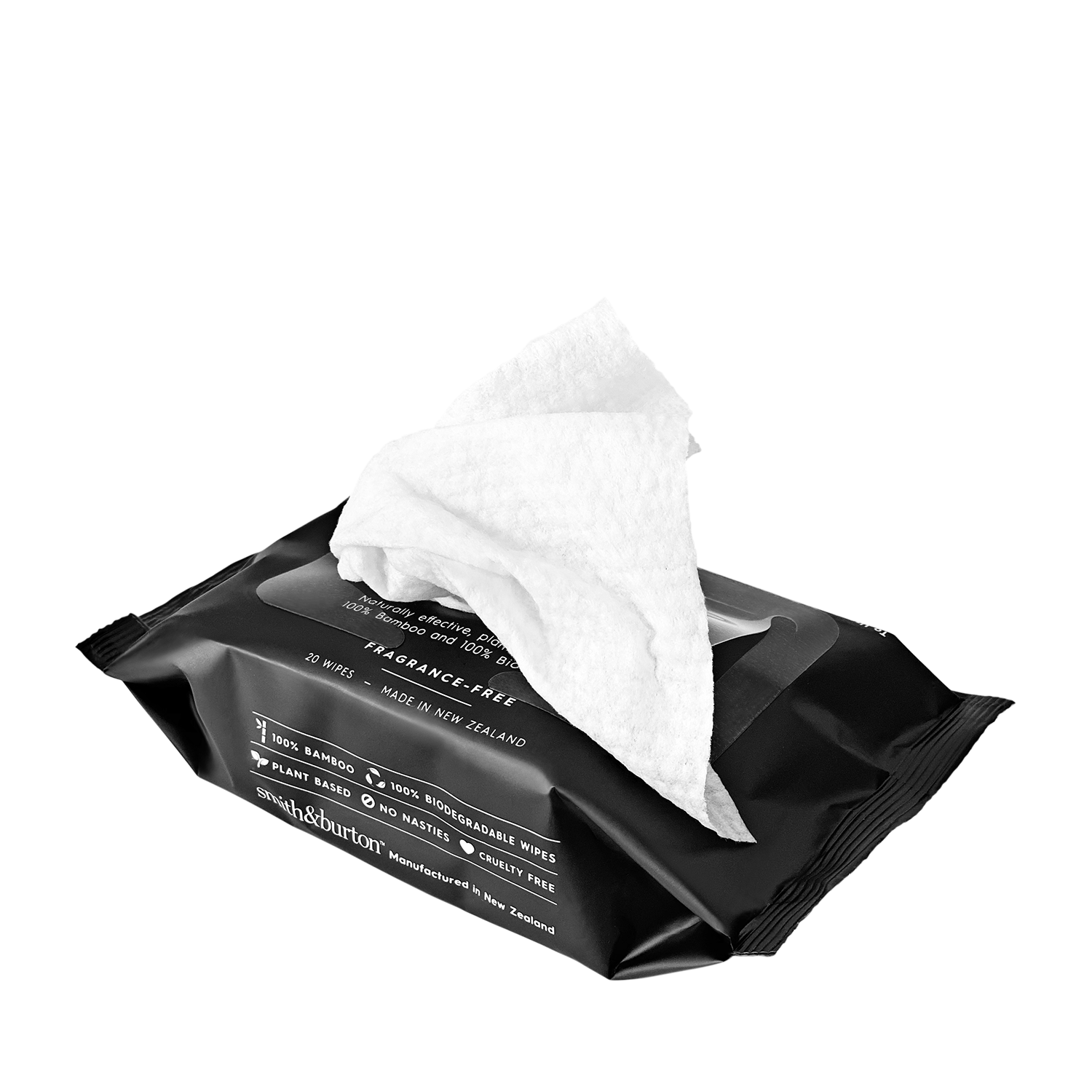 Nuestras toallitas 100 % de fibra de bambú de origen sostenible son 100 % biodegradables y suaves pero resistentes.
